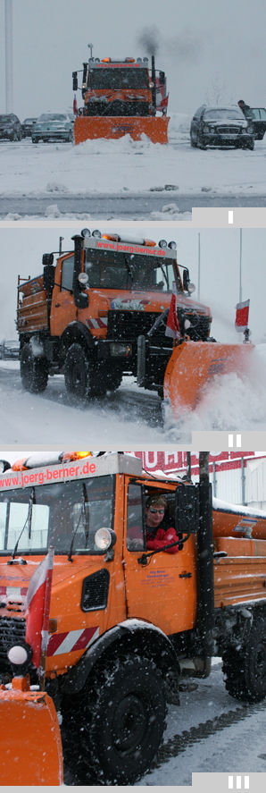 Mit unserem 1200er Unimog mit 3 Kammerstreuer (Salz,